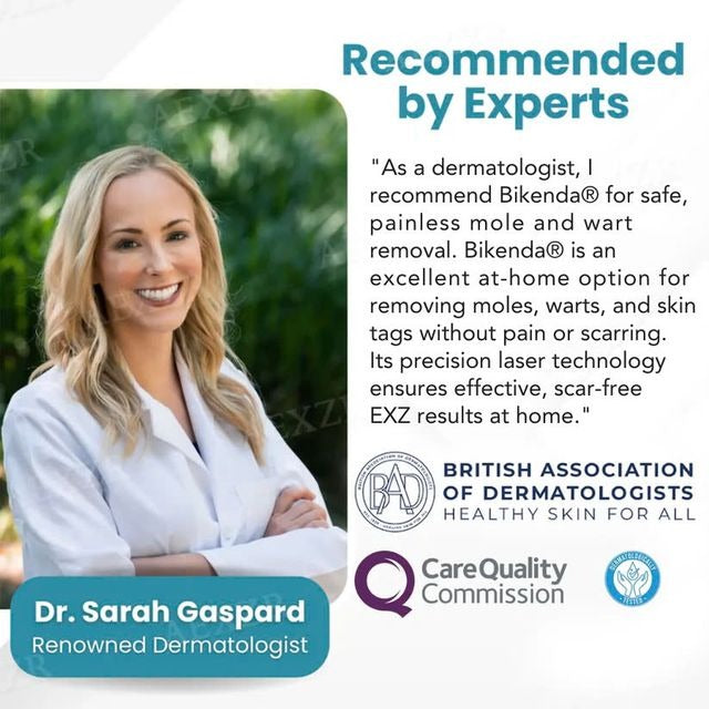 The UK's leading dermatologists consider Bikenda® to be a breakthrough in at-home skin therapy. Backed by clinical studies and top dermatology associations, regular use of Bikenda® has been proven to be effective in reducing moles, warts, dark spots and skin blemishes. Experts recognize Bikenda® as a safe, non-invasive alternative to costly professional treatments, making high quality skincare accessible to all.